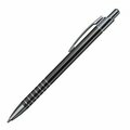 Aluminiowy długopis z metalową skuwką. Wyposażony w niebieski wkład.